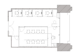 Within a single space, an independent structural frame composed of columns and beams is installed. By connecting these separate structures, rooms and functions are created as entities detached from the existing space. The continuous arrangement of columns and beams evokes the impression of traditional Japanese architecture, conveying the identity of a Japanese company.